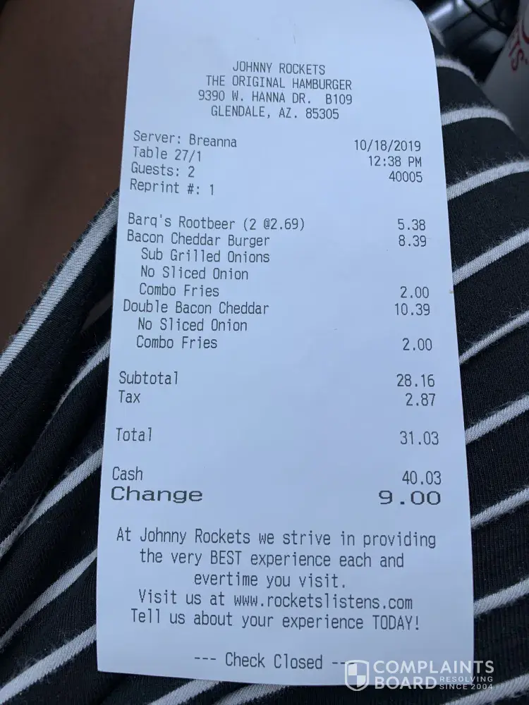 Johnny Rockets complaints: history and resolution overview