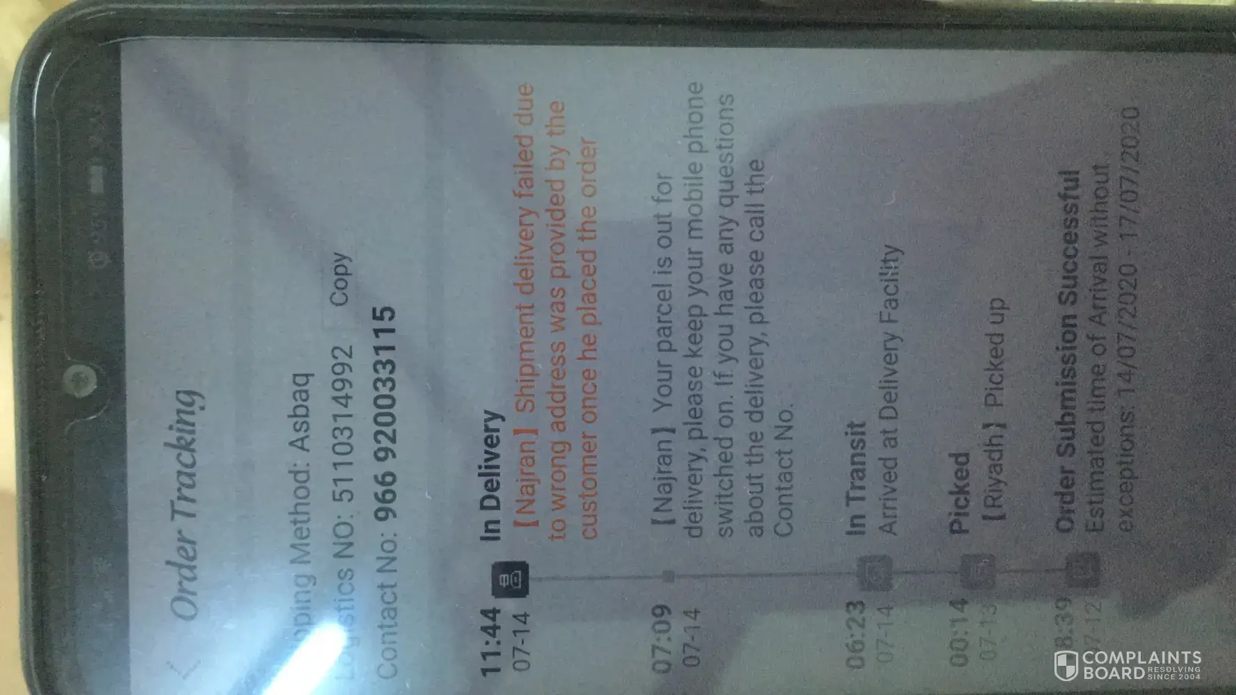 5110013858 Still not get my order it's keep showing me the out for delivery and no one contacted me.. and upto last they will cancel by saying changed address or customer didn't respond.. whenever my orders delivers by asbaq I faced many things .. nowadays zajil are best..
