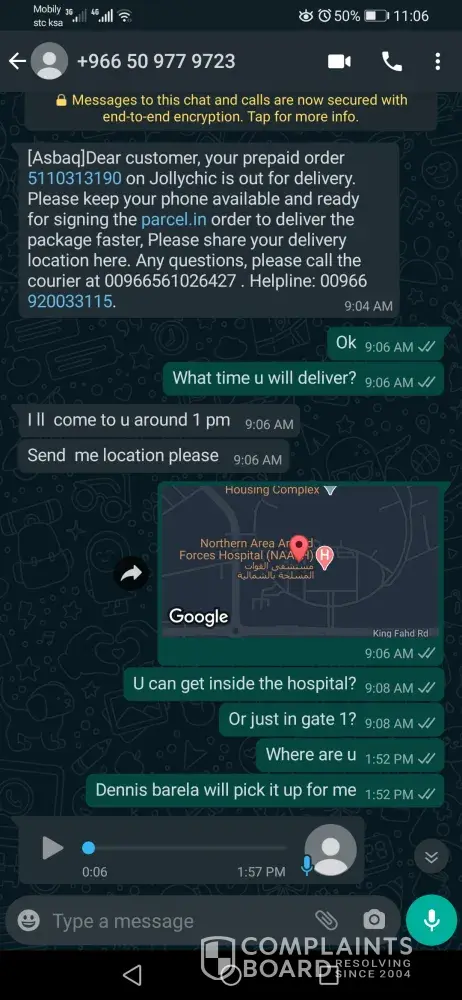 Delivery man from asbaq with this contact number +[protected] complains a lot, he was arguing with me why he cannot locate my location when I already send it to him multiple times.. its not my problem if he cannot read the right directions.. he even told me not to order on Jollychic again. Please make sure to review this as it is unacceptable to have that kind of attitude towards costumer who patronizes ur item