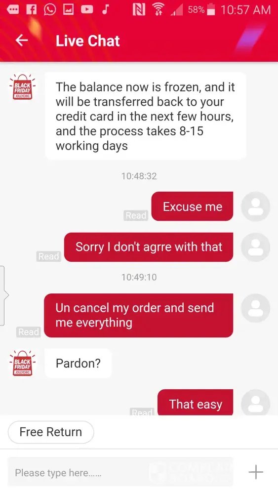 out of 10 items and today the balance amount was returned to my account without any explanation i tried to call the center in Dubai no answer at all