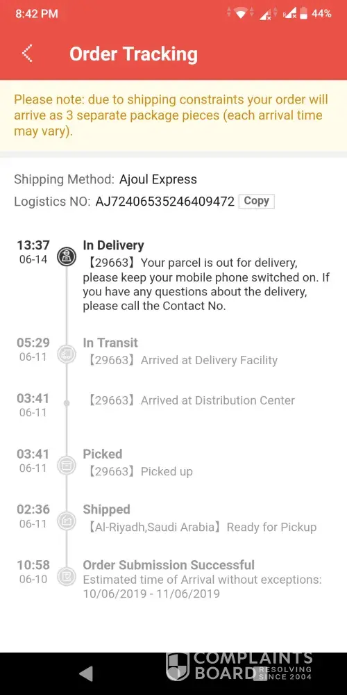 At first when I received a call for delivery, the driver went to an other location which is remraam. That was my previous address, whereas in my order I had mentioned my new address. They did the same for both the orders.Â