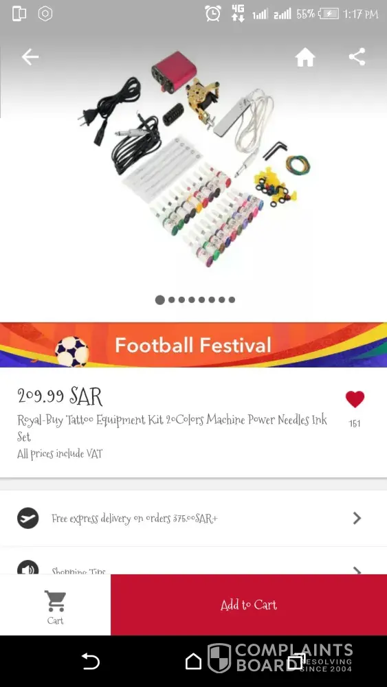 I paid tattoo kit (Royal-Buy Tattoo Equipment Kit 20Colors Machine Power Needles Ink Set#5XPB80B2602G) for 209.99 SR + shipping fee + cod fee but they send wrong tattoo kit (Tattoo Kit Pro Gun Machine Power Pedal 10 Colors Ink Set Needle Grip Tip#5XPB80B2602F) worth 176.20SR.