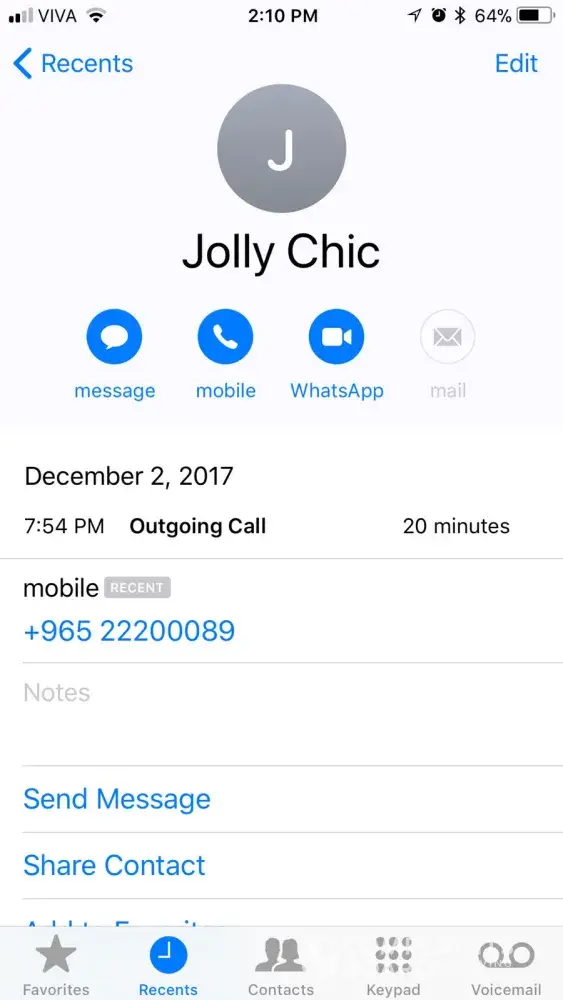 6- On 2nd December there was a miss call (attachment 6) while we were a sleep from Jolly chic - Saudi Arabia office as well as on the same missed call time there was a notification message (Attachment 7) on our Jolly chic website account stating that order is cancelled due to out of stock.