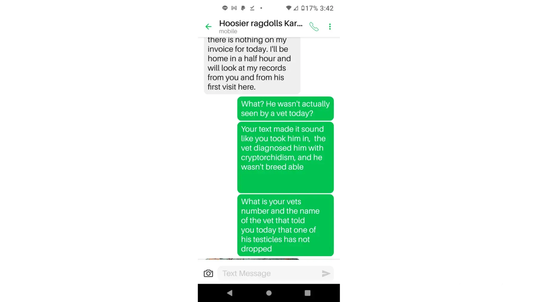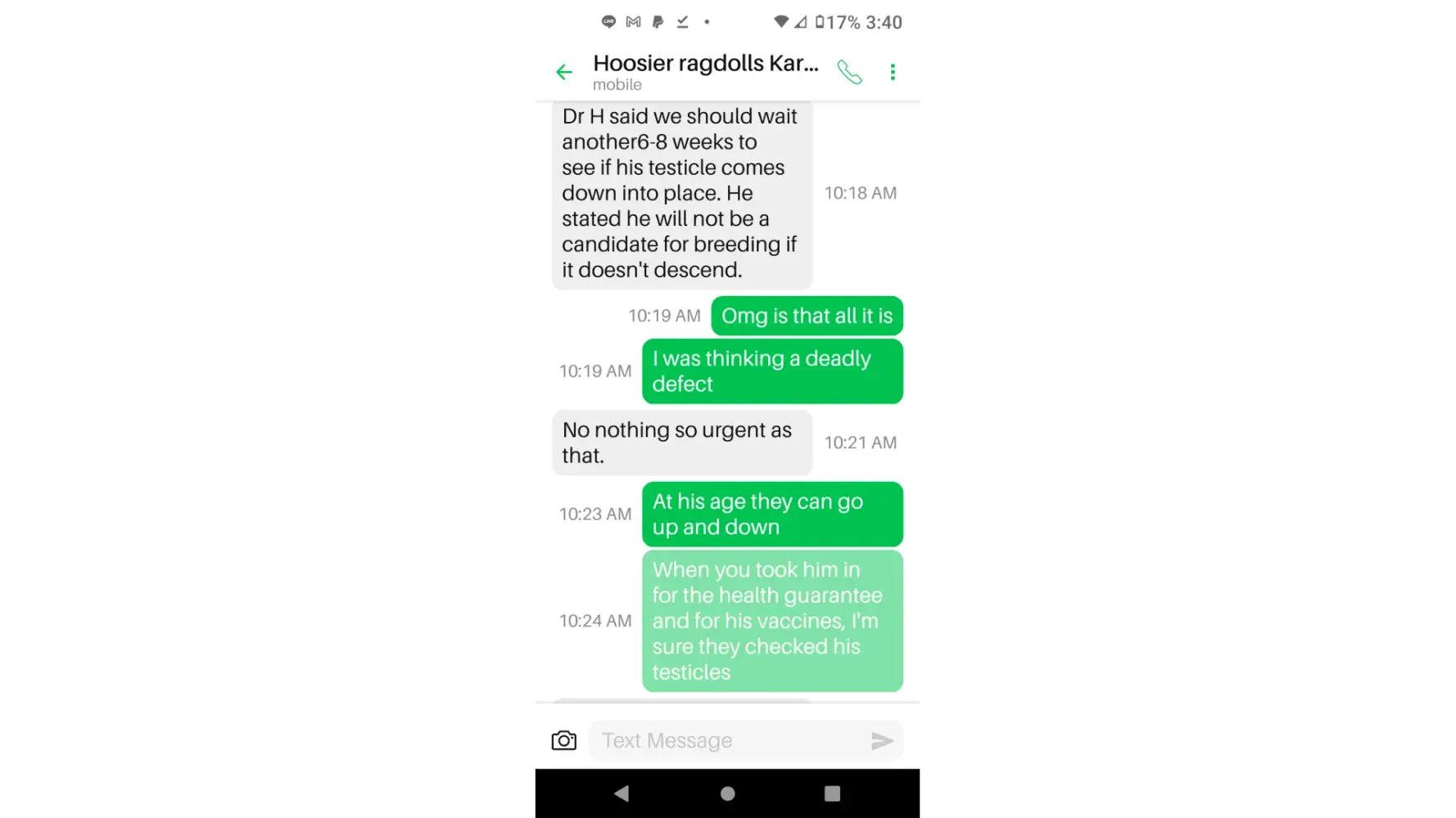 All I can say is WOW, Luca was seen by my vet June 10th, 2022 with a clean bill of health, my vet only posts negative findings and any vaccines or medications they received. No mention of testicles not descending. Karen Morris from Hearthrob Ragdolls received him 7-2-2022, She took him to her vet that day. I received the vet report and no mention of cryptorchidism from her or her vet. she took him again 7-09-22 again no mention of one testicle of being non descending. She took him again 7-23-22 and for the third time, she never mentioned or does the vet report mention cryptorchidism. I think a breeder would have that checked out, on a breeding male kitten and if they saw only one testicle would make note of it. I spoke to Karen for months many, many times and she never brought cryptorchidism, until
