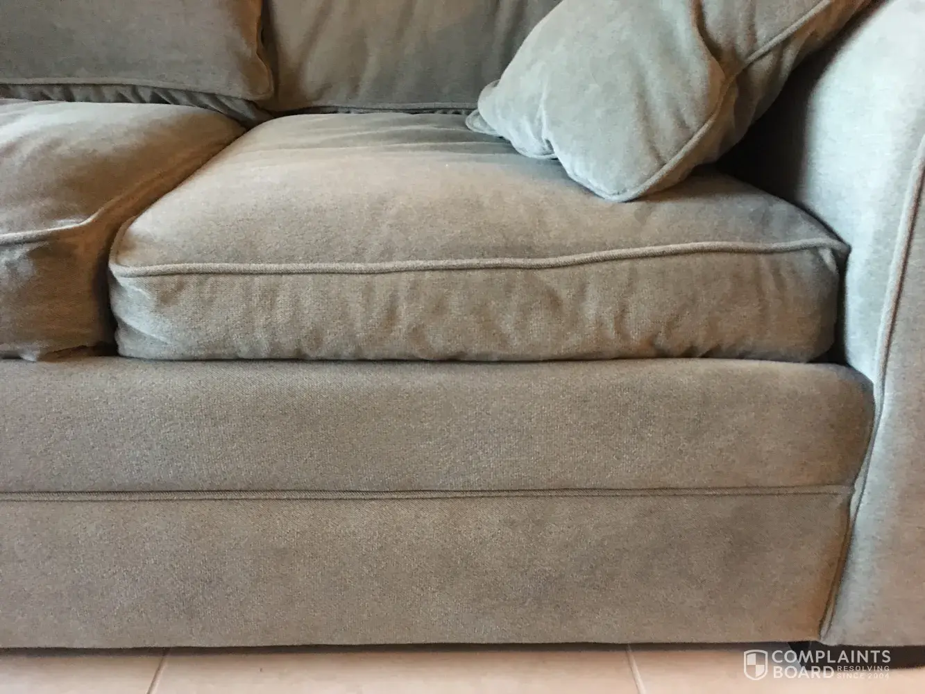 I am obsessed with my JL couch, but for all the wrong reasons. It's like the material isn't typical sofa material and is too loose or thin...the middle cushion of the seat part of my couch was not aligned with the filling and appeared dented on one side, so after a few weeks I unzipped and refit the cover to the filling properly, which helped. That pleased me for about a day. Most couches do not warp after one (average size) person sits on it. Also every time anyone even touches that cushion, the fabric wrinkles/dimples, not to mention the back cushions are already slouching. I have owned this couch for under 6-months people. I know it was not the most expensive couch I could have gotten, which is partly why I got it. But considering my old $400 couch from Hank's held up better over 6 years, there is a quality problem. I am so frustrated with how this couch looks, I don't even want to be in my living room because the sight of that one sloppy couch cushion incenses me! In all honestly I have not called to complain to Hank's Fine Furniture because I feel like I"m being psychotic about a couch, but I consider more every day that goes by because I am so unhappy. I feel like a different fabric choice would help the main problem, but they shouldn't offer to cover a couch in a fabric that won't hold up to LIGHT use.