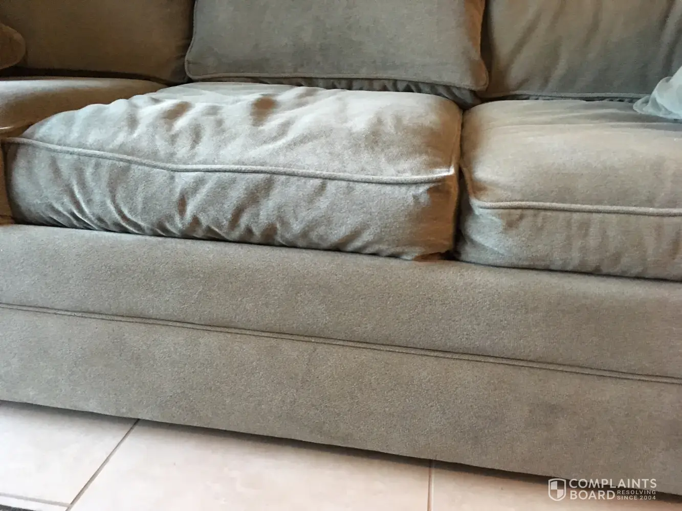 Wow I had the EXACT same thing happen to me! Three years ago my house burned down and when I rebuilt my home I was also told that Jonathan Louis was a great furniture company. My couch looks like I have owned it for 10 years now! I am in the process of trying to find a slipcover to put over it because I am so embarrassed with how it looks. I will never purchase another sofa from this company again that's for sure!