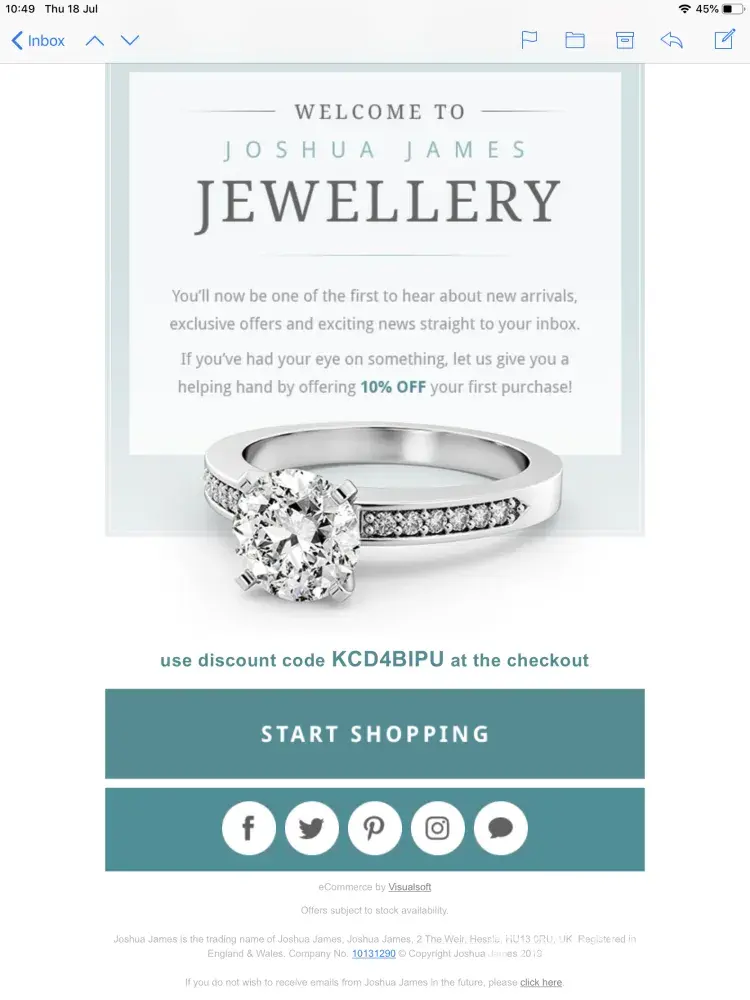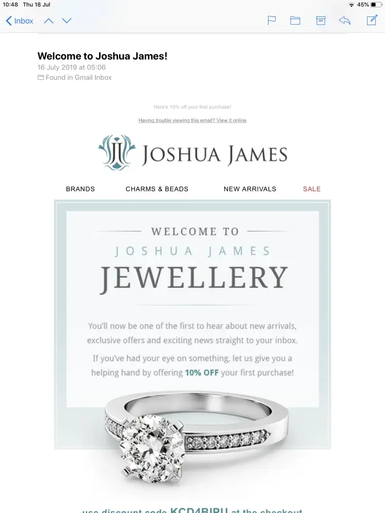 I'm totally disgusted with Joshua James Jewellery and will never use their discount and will never buy anything from them again!
