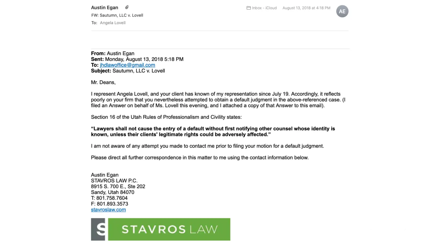 I was never a leaseholder at this property, but Josh Stern faked an eviction with my name on it to ruin my credit and force me to return to Utah for court proceedings. My ex-husband, Joshua Hanagarne, was the only one who signed the lease on this house, which I joined him weeks later (I lived in NYC at the time of the signing). I was listed only as Occupant, along with my ex-husband's eight-year-old son. Even though I was very visibly in the process of moving out of the house, Josh Stern and his mother, Lee Stern, came by the property to harass me while my belongings were being moved. My attorney contacted Josh Stern and directed all future proceedings to go through my attorney’s office. Josh Stern ignored this, continued to harass me (along with his mother), and faked an eviction against me—not the actual leaseholder—weeks later after I was no longer in the house, or even in the state of Utah. My lawyer secured an Amended Order of Dismissal, proving I was never responsible for this lease, on which the rent was paid in full at the time. The Dismissal claims the lease was mutually terminated, but my ex-husband, and true leaseholder, remained in the house over a year after I moved out. Five years later, I'm still trying to have this false eviction wiped from my credit reports. My next steps will be taking legal action against Joshua Stern and Sautumn, LLC.