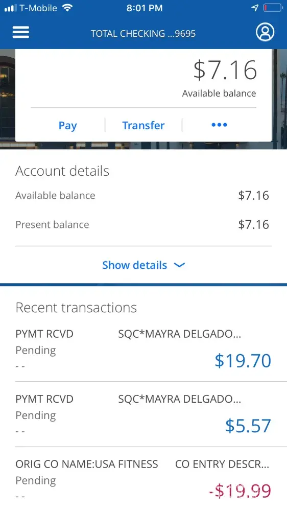 At no point during any of this activity was I alerted by the bank, which I had setup account protection, for any transactions over $200