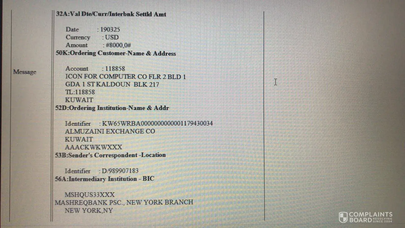 i need few guideline about the remittance. i am exporter by perfoshien and my customer send down payment from Kuwait below is attached TT slip and swift MSG. My bank is saying that they are not able to trace the wire and my customer is saying that wire is gone through GPMORGAN CHASE BANK . Would you able to inform the status of the wire ?