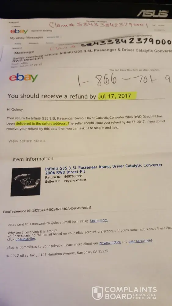 Part was purchased and returned to EBay seller within the 30 days time frame specified on the website. Refund refused by seller who claim item wasn't in same condition purchased and lied to Chase claims and visa that there was a 14days policy. Would eBay allowed the return if it was outside of the return policy time frame? NO ! BADLY HANDLE by chase Claims. They never requested additional details from myself the buyer which I later provided after the funds were reversed. So $332 DOWN THE DAMN DRAIN BECAUSE CHASE DONT TAKE CARE OF THEIR CUSTOMERS! CLOSING THIS ACCOUNT and done with this stupid bank all together.