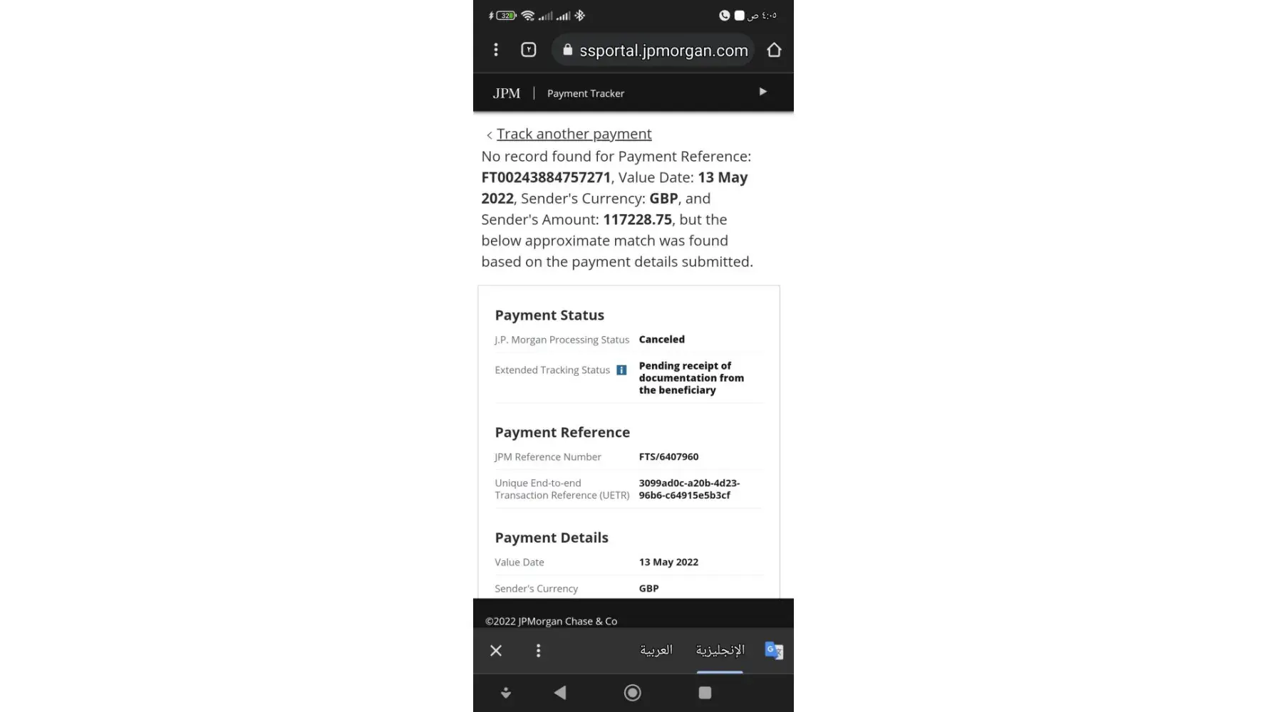 JPMorgan Chase A problem with the process of transferring personal funds from UK to Egypt