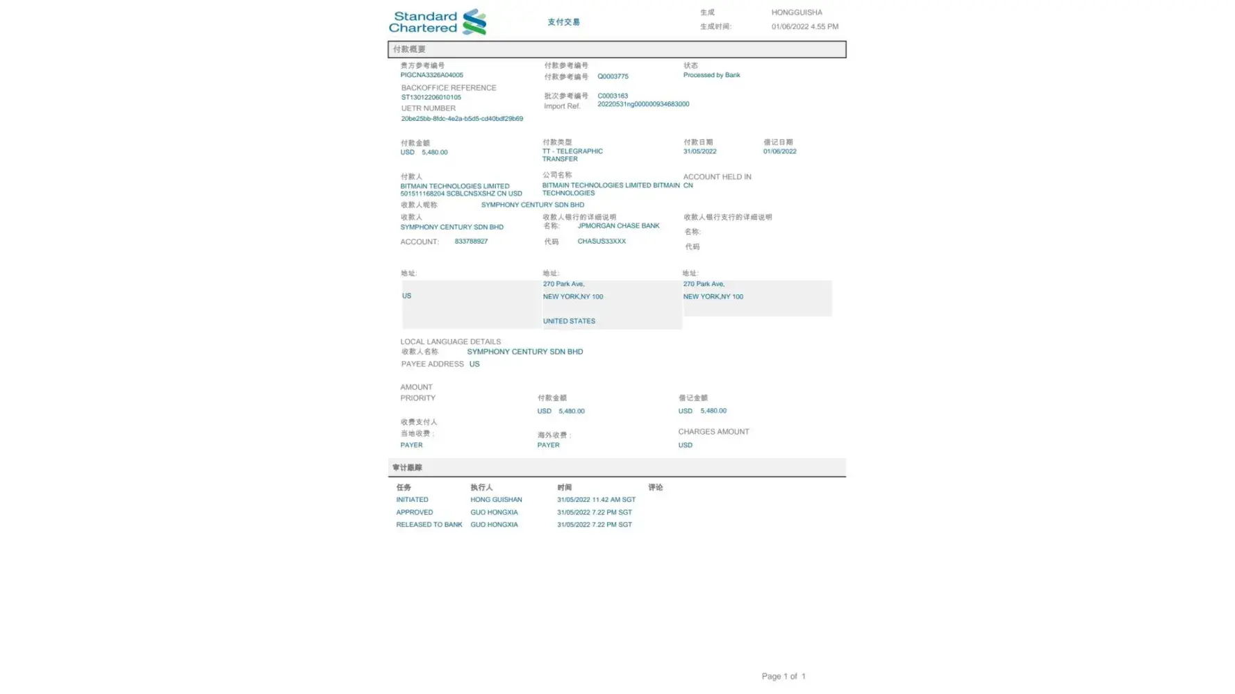 The transaction reference is pigcna3326a04005 made by bitmain technologies limited to symphony century sdn bhd at account [protected]