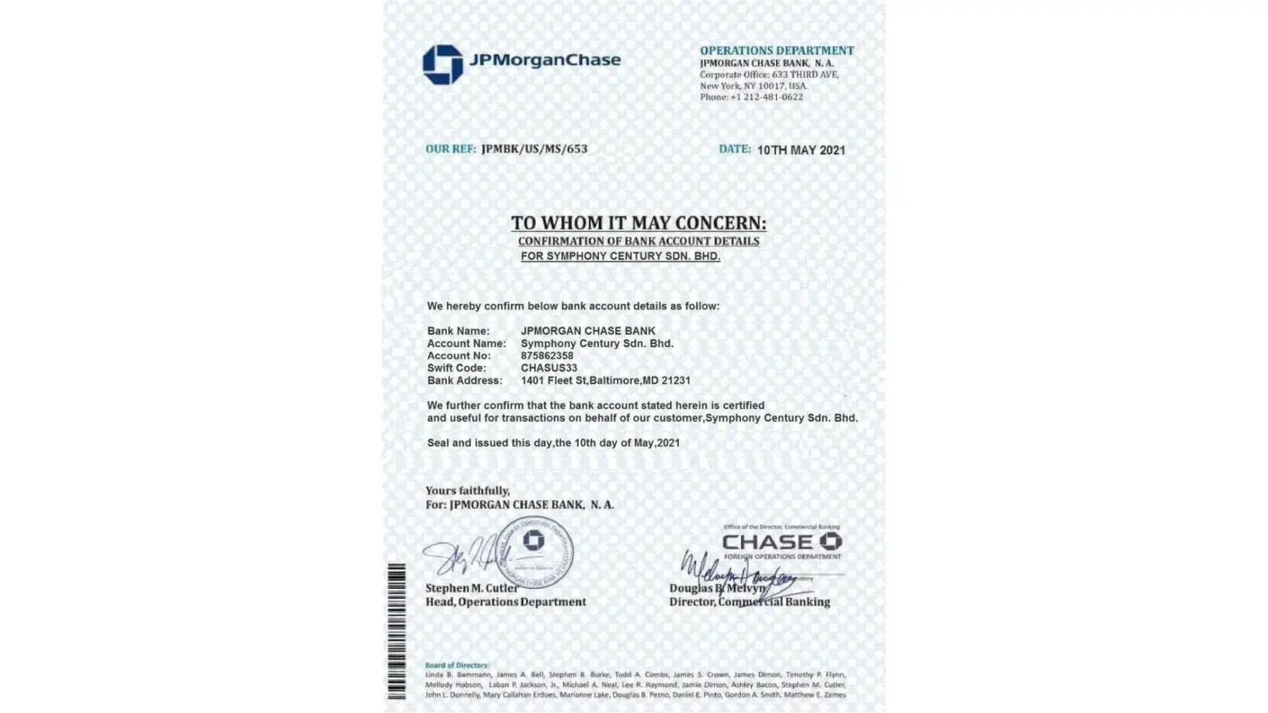 Scammer has been using JP Morgan Chase bank to scam other payment.The scammer is intimidate us in Malaysia to our customer in China and request our customer to switch payment account to JP Morgan with a fake JP Morgan Chase memo.