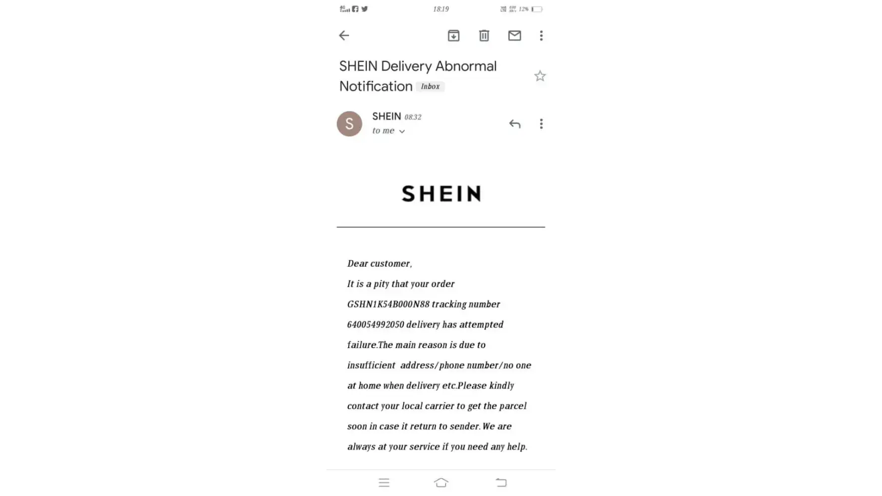 Parcel have not received