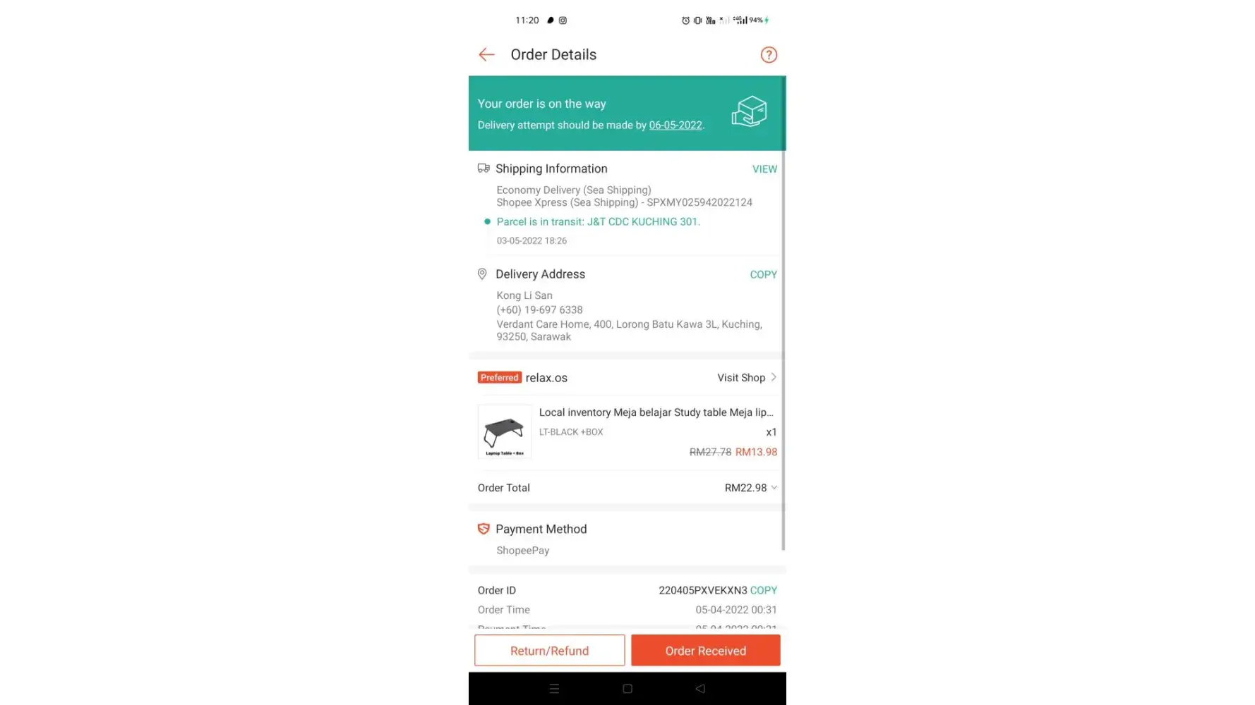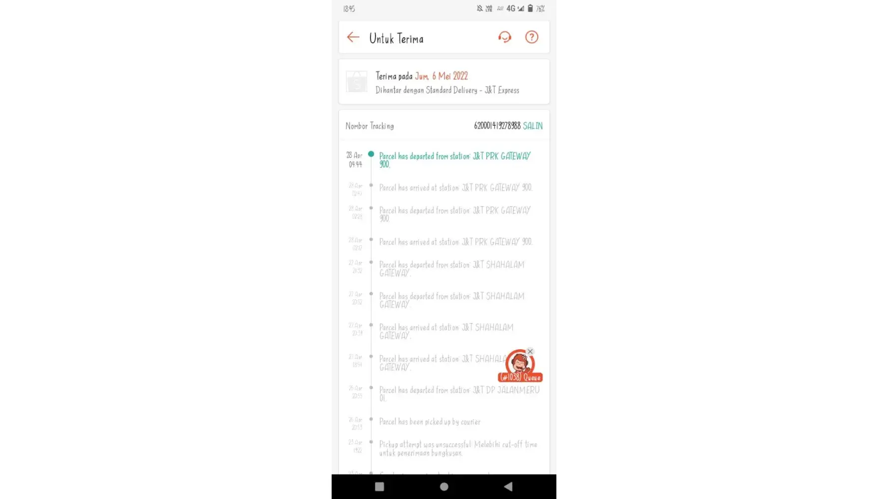 23 April 2022 - 28 April 2022 (still stuck at J&T PRK GATEWAY 900