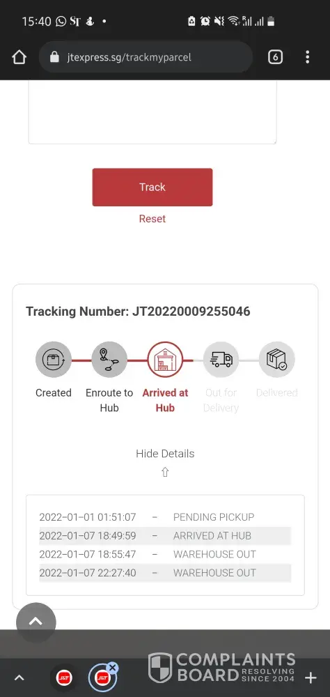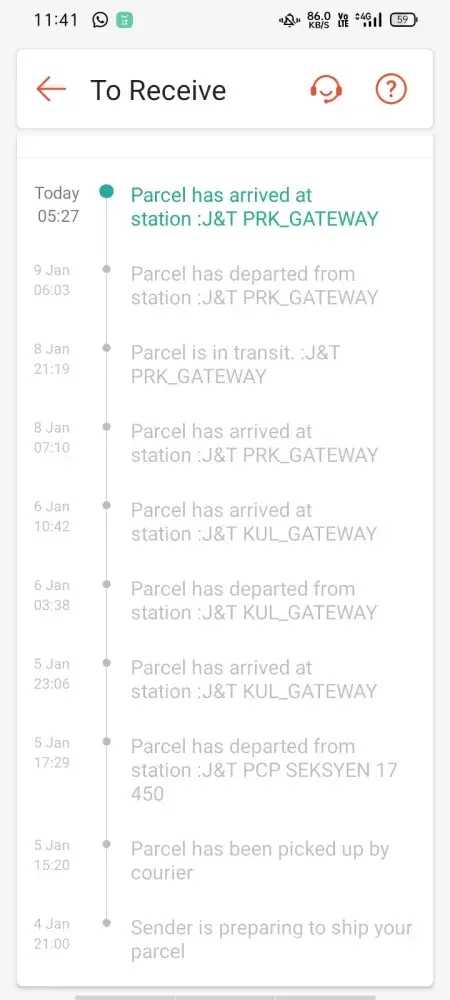 Parcel [protected] berada di J&T CDC BD. TEKNOLOGI 301 DARI TARIKH 6/1/2022 SEHINGGA HARI INI 14/1/2022.SUDAH 9 HARI BERADA DI SANA.