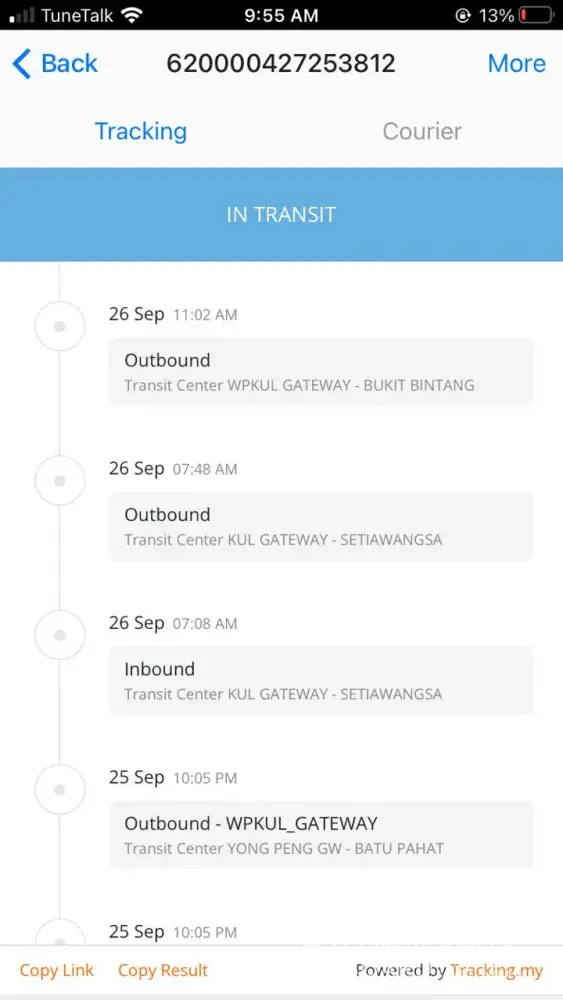 28hb last update lepas tu tak ada lagi. Boleh recheck balik di mana parcel saya. Sbb sepatutnya paling lewat hari ini. Saya nak gunakan bahan kerja saya sebelum 4hb. Let me know..