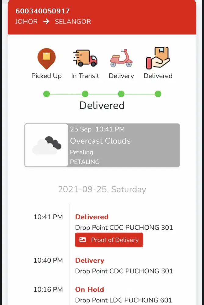 I want a clarification on the whereabouts of my parcel : [protected]. I dropped my parcel at jnt Muar on 16/9/2021. After being on hold for more than a week at jnt cdc puchong 601, on 25/9/2021 the status changed to delivered. However, it was delivered at cdc 301. The recipient hasn't received it yet and the proof of delivery was also just an empty picture. I've tried calling the customer service countless times. I've tried calling the branch itself as well as live chat but to no avail. I'm wondering what happened to puchong cdc 301 and 601? I know I'm not the only one facing this issue. Some even said that they lost their parcels at these 2 branches.