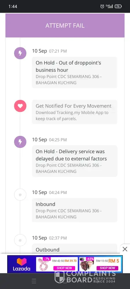 J&T Express Ipoh Perak to Seri Iskandar Perak took 6 days also not reaching parcel