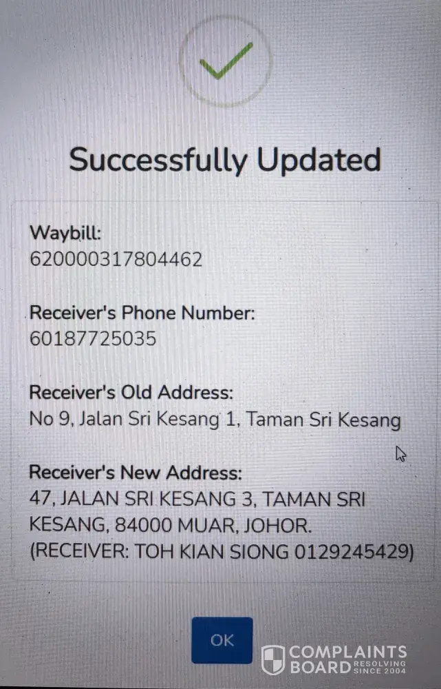 So when I connected to Sabah line, the person in charge can't speak well and replied me that she may need to check with Klang side as Klang side used to make mistake on parcel.