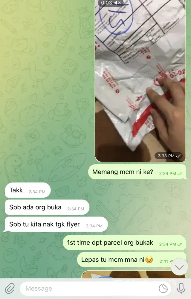 Parcel saya dibuka, dan mask hilang 2 unit. Lepastu diselotep pulak balik! Harap pekerja xjujur dipecat. Spxmy019673632418