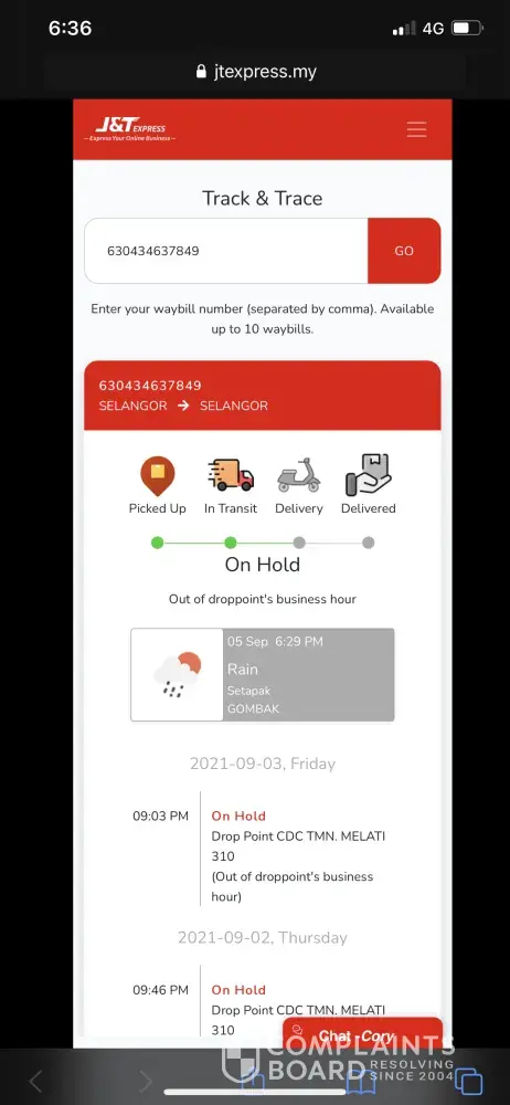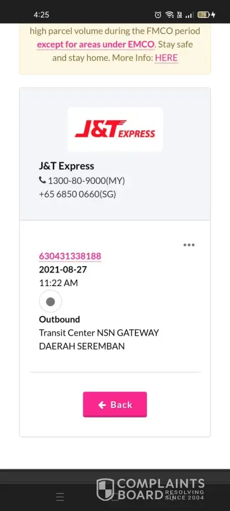 We have been going back and forth with the staff of J&T for feedback, but we are always awaiting feedback from J&T Negeri Sembilan for the parcel, but they never helped us to look for the parcel.