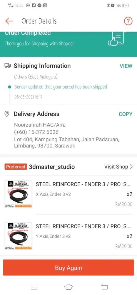 Image 1 : Screenshot from the Buyer's Order in Shopee.