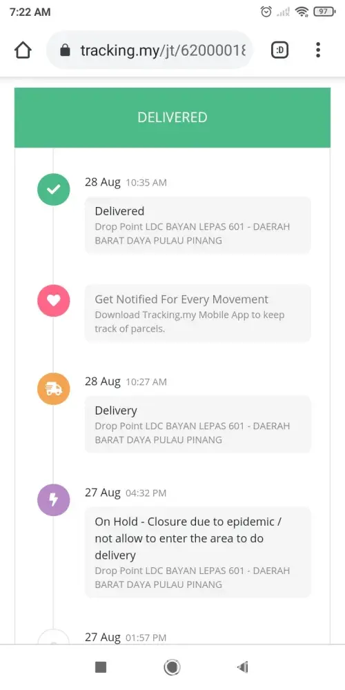 J&T Express Parcel is forever IN TRANSIT, SUPER SLOW