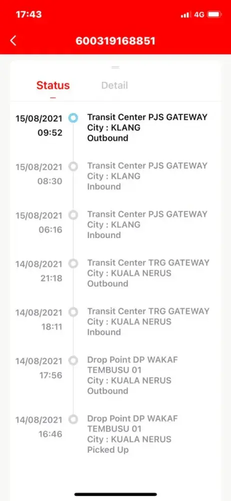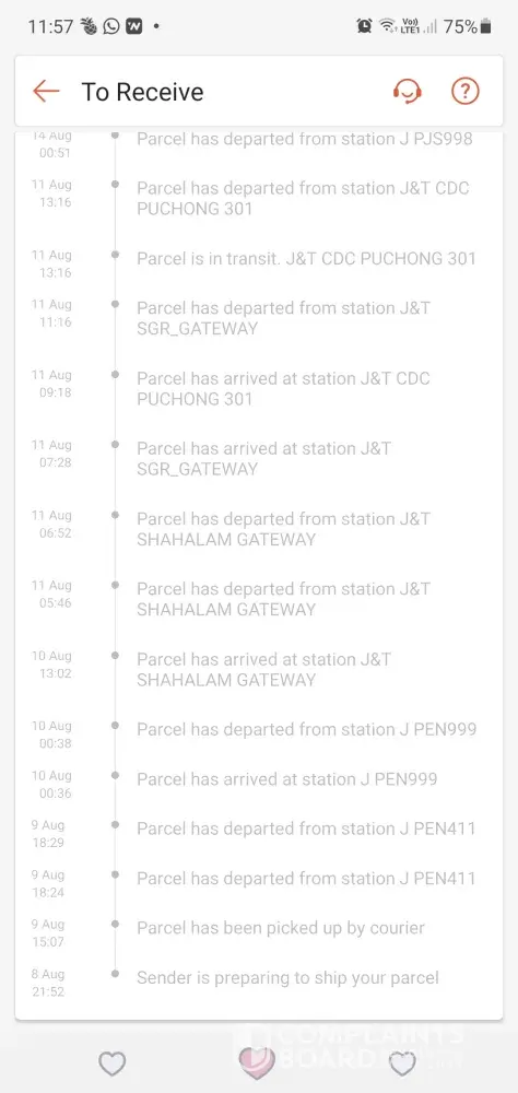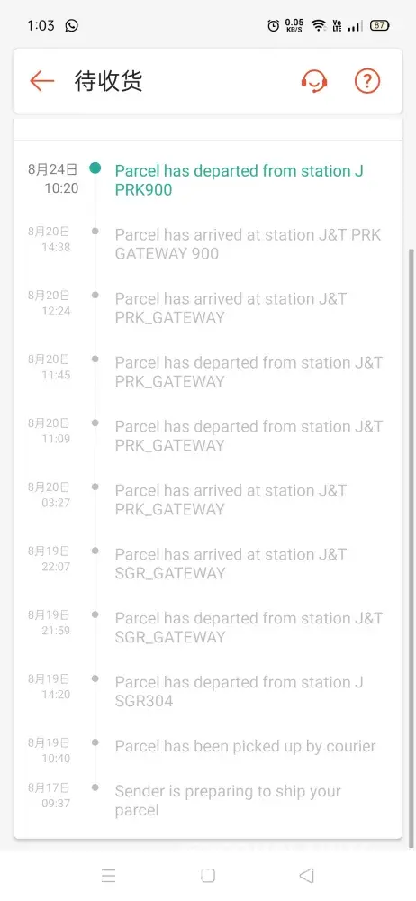 Hey j&t, my parcel was sent from jb to ipoh at 17/8/2021 and until today 28/8/2021 I did not recieved my parcel. My parcel are now at prk gateway 900 and has been scaned for outbound at 25/8/2021 but untill today still stuck there. Everyday I called your customer service hotline and their reason always the same which is there's been a problem at the gateway and klebang hub. What took you so long?! Taiping - ipoh took more than 3 days? Please fix your service and this will be my last time to use your service. Totally your service sucks. Before this I really love to use your service but this time you have exceed my limits. I already told to your customer service hotline that my parcel is urgent and seems like they didn't bother about it! I need my parcel to be arrived quick!