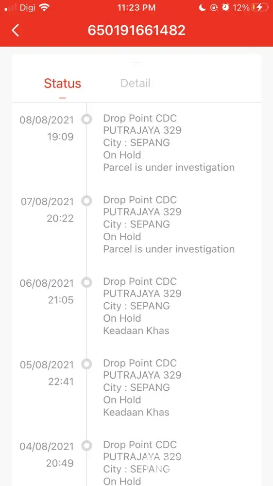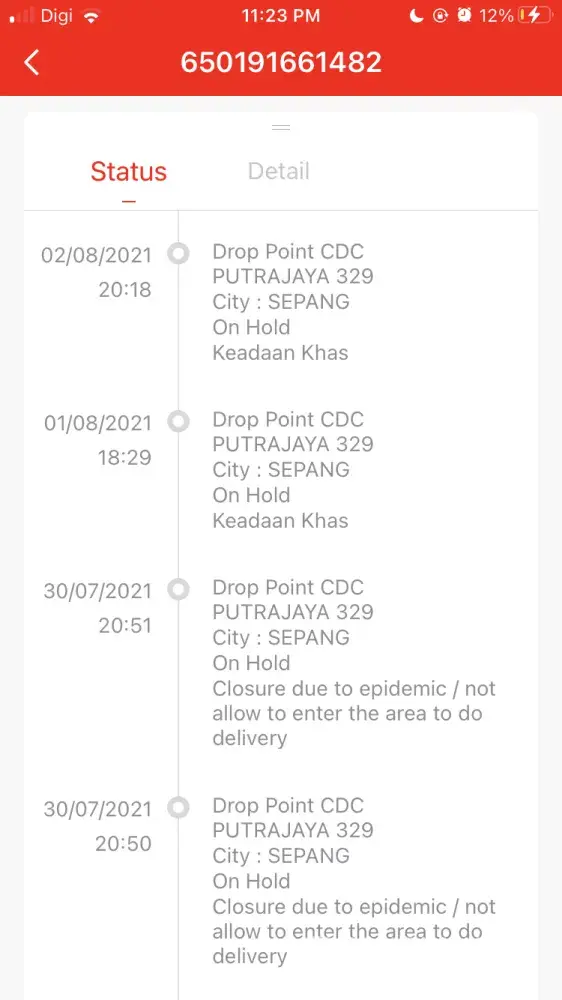 Mohon buat penghantaran semula untuk parcel saya yg on hold disebabkan kawasan penghantaran tidak dibenarkan kononnya. Sedangkan, kurier lain semua hantar okay je and kawasan rumah saya tidak di kenakan apa apa pkpd or what. Kalau takbole hantar, bagitahu dulu bfore tuka status tu. I need that item asap. Ada 2 parcel. Here my track number. Pls!