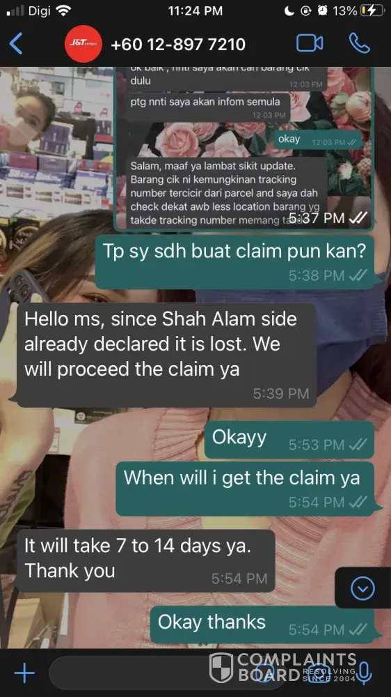 On 13th august my customer Parcel already stated as lost and can claim, but already passed 16days still no refund. I'm shock to see that the item suddenly stated as delivered but the recipient have not receive any parcel. I just need j&t to refund back the money as soon as possible. Please resolve this problem and don't ignore because I've texted and ask politely but no reply.