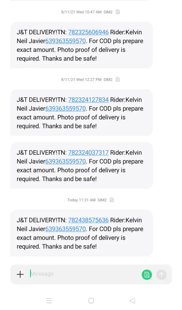 Hndi dineliver ung parcel ko.. tapos sasabihin refused to accept order.. Ni wala nga pong tumawag sakin.. Hnihntay ko nga pong tumawag ung rider kasi may nagtxt sakin na notification na out for delivery na.. Kelvin neil javier name ng rider.. Ika apat na tong parcel kong to na ganyan ang ginawa nya sasabihin ni refused daw eh hndi naman po dineliver..