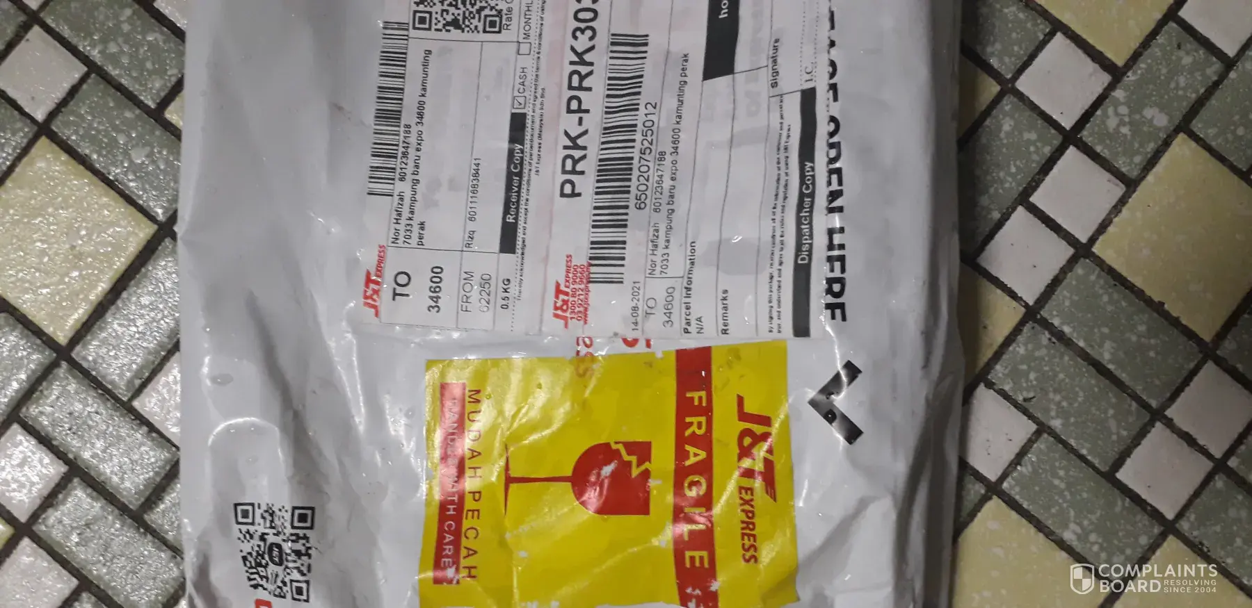 Saya telah menerima satu penghantaran dari Kuala Lumpur pada hari Ahad 22 Ogos 2021.