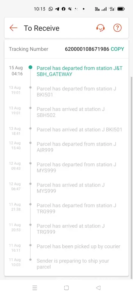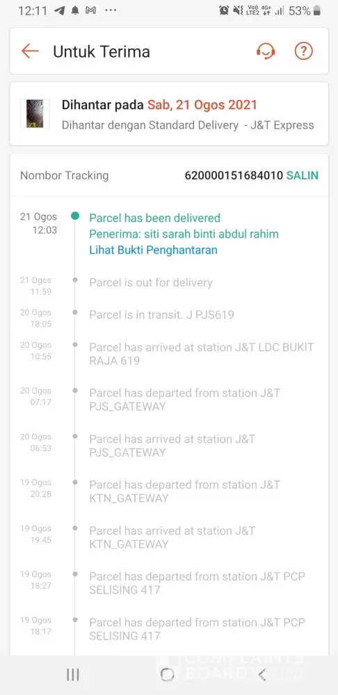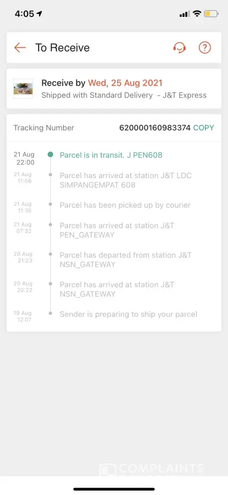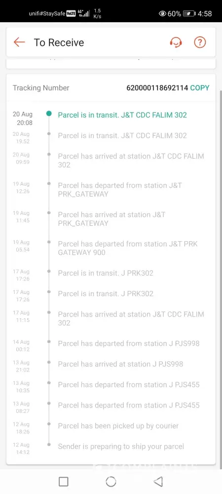 Statement from seller claim J&T courier service staff already pickup the parcel on 9/8/21, but as per check their tracking system, the parcel only updated on 14/8/21 via their tracking system.