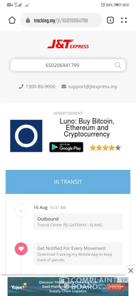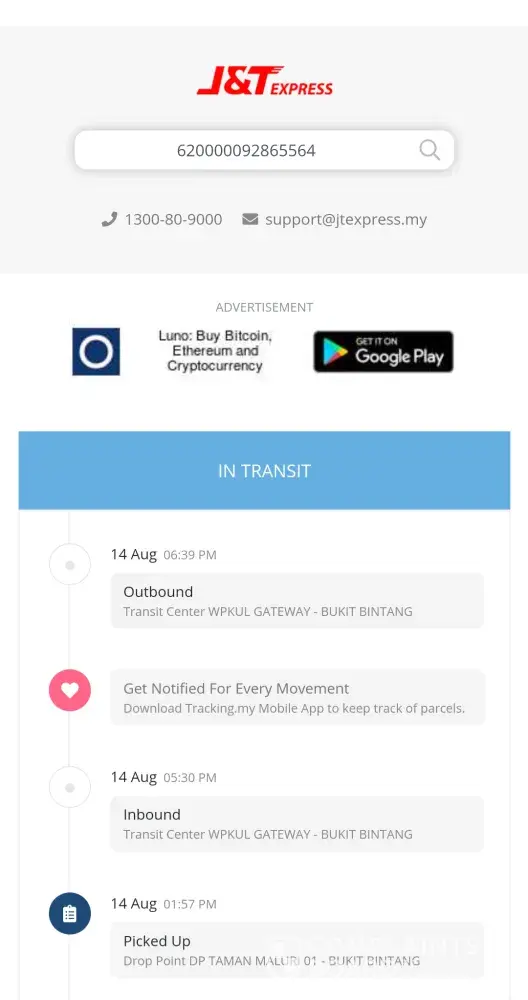 As per check the parcel they collect from the seller is still and same place J&T Transit Bukit Bintang and still not moving.