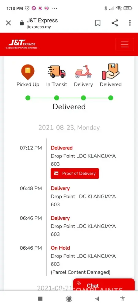 I demand for push delivery of my parcrl. Its has been stuck since 21 August 2021 at J&T SBHAIR_Getaway.