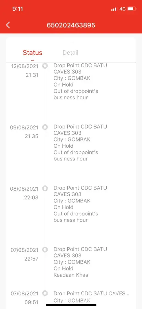 Already arrived at CDC Batu Caves 303 on 7/8/2021, but until 22/8/2021 still not out for delivery. Already call JNT hotline to make a complaint, but still no move. I'm not sure why they need 15 days to arrange delivery. Do your work properly!