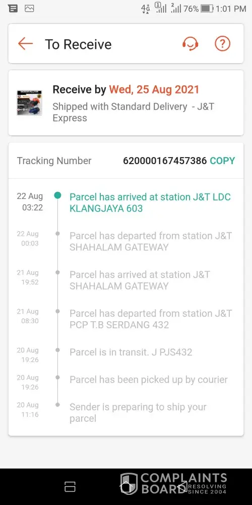 Jt express ldc 603... So latr delivery and many item return back to saller.. Refunded money. So bad.. Don, t have self collect no give item.. To self collect.. Ldc603.. Jt express klang jay.. Bad..Courier... Big item problem delivery ldc 603.. Klang jaya jt expresa bada...