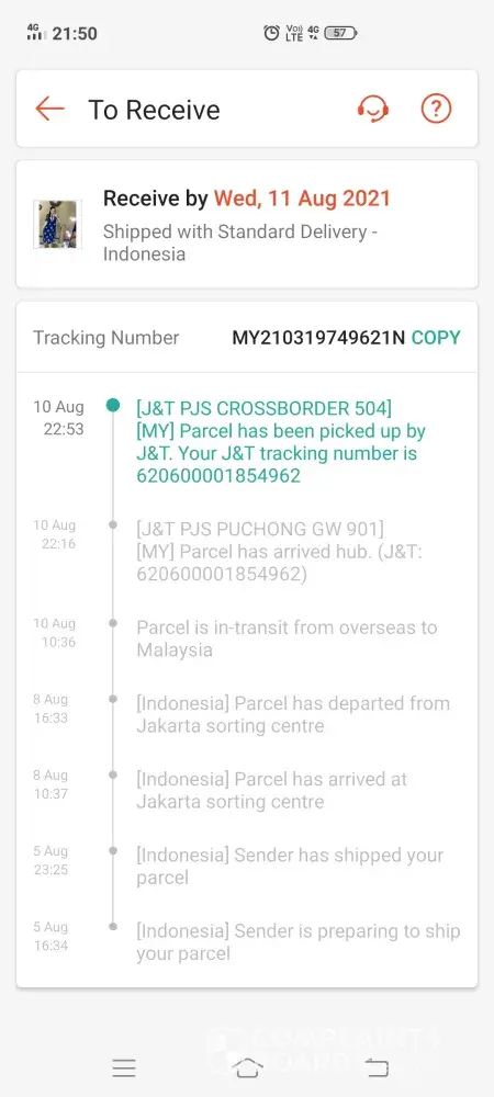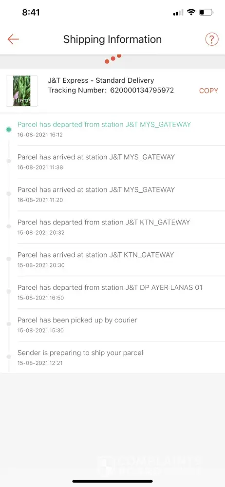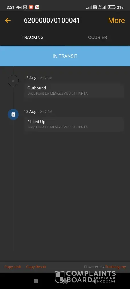 Tolong uodate no tracking [protected]. Tiada pergerakan lansg dr 16/8/21 smpi la skg