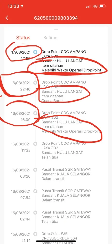 seller dah ship since 10 august, sampai sekarang x smpai ii...dh lebih seminggu, padahal dari selangor ke selangor je, elok ii dh smpai pjs 998 dh nk dekat dengan rumah, pastu tetibe pergi station shah alam la klang la, perlu ke pusing jauh ii...DAH NAK SAMPAI STATION YG DEKAT NGN RUMAH KOT