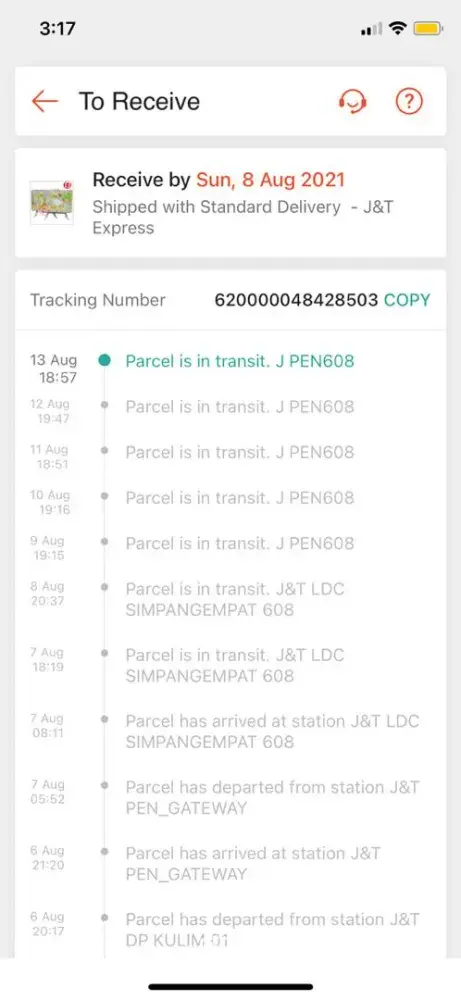 slow delivery ! its been 5 days and i still can't recieve my parcel ! please j&t PERAK act immediately
