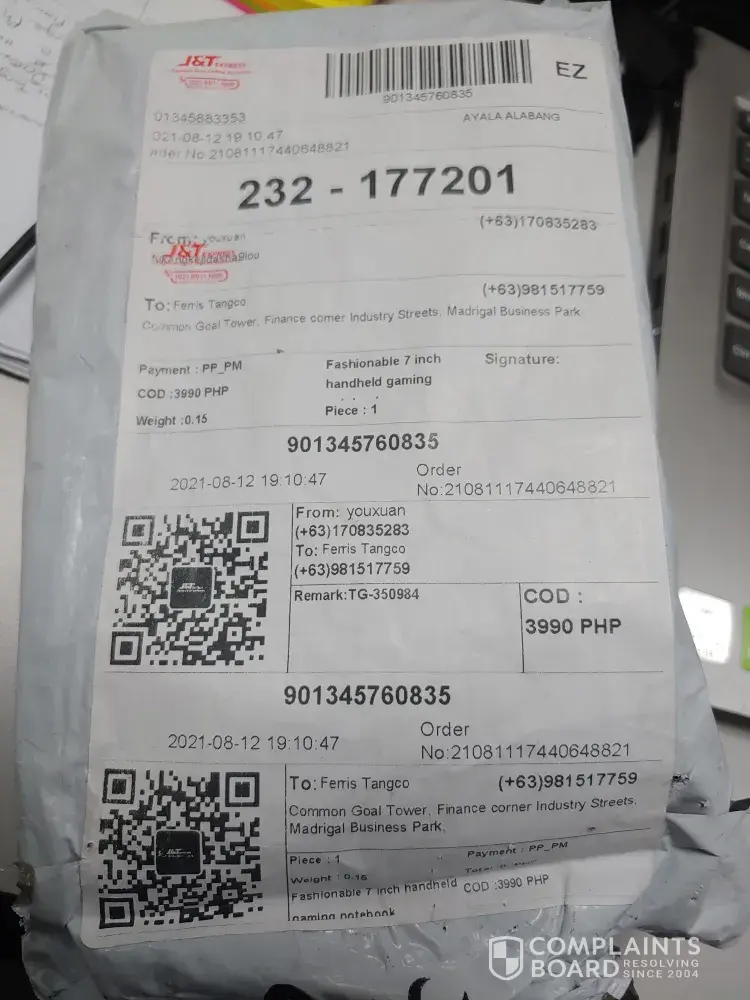 Complaint: Obvious trickery in the order from the beginning. J&T Express did not verify if item is the one ordered.