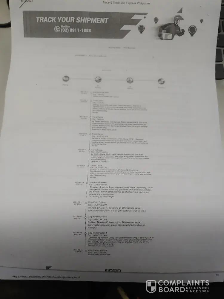 Parcel On Hold by J&T since 9th August