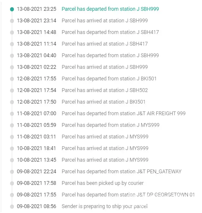 order item from shopee, item already at sabah but no update since 13th august. its already 4 days since j&t update on my parcel, i need update on my parcel. it seem like my parcel still on load truck for 4 days and its not possible if my item still in the load truck since sbh999 hub and my delivery address is not that far from the hub. hope j&t will solve this proble immediately.
