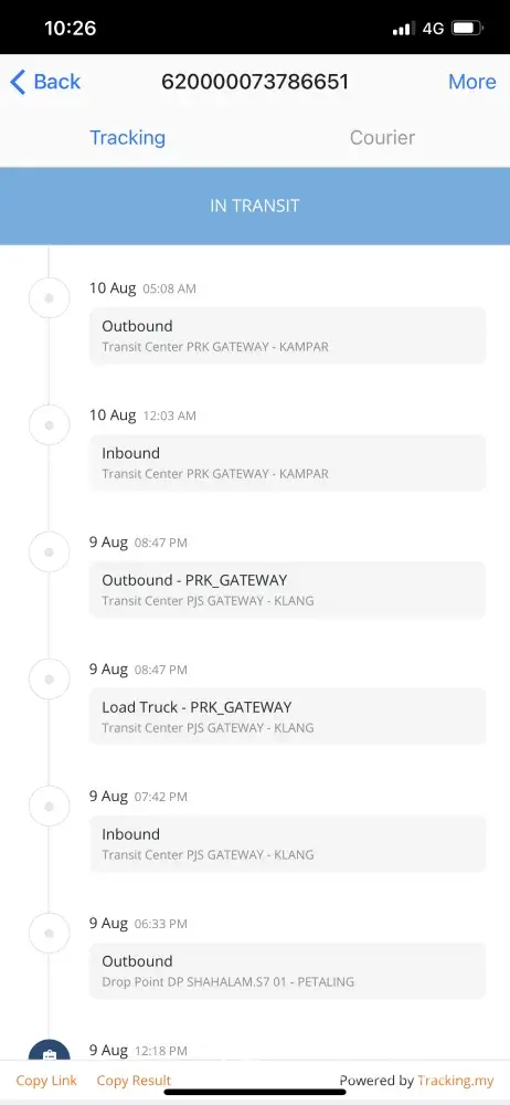 Da tiga hari barang saya tersadai di transit center prk gateway-kampar.. Sepatutnye barang da jalan 2 hari lepasbtapi bila saya cek tidak berubah droppoint barang saya
