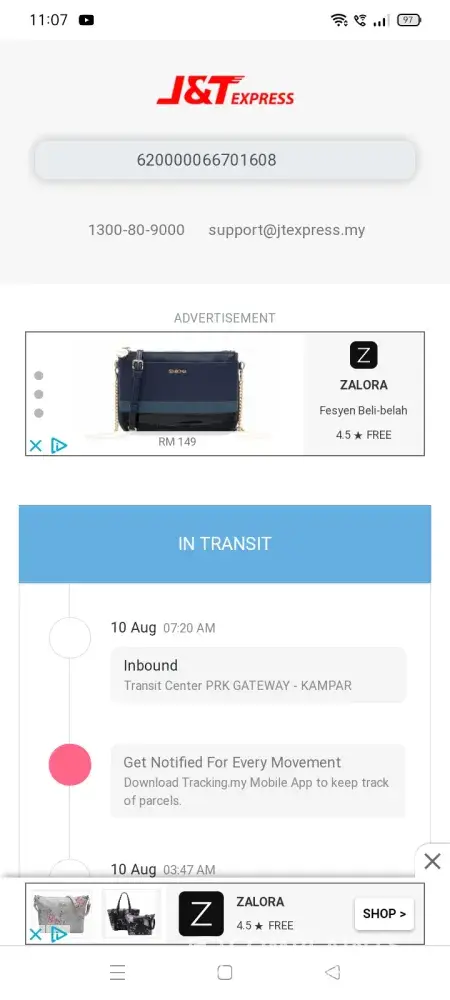 Barang saya da tersadai lama kt j&t transit center prk gateway-kampar