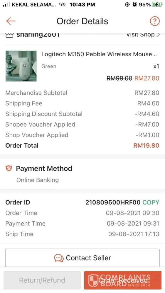 I order at shopee and i attached some image proof to these matter.