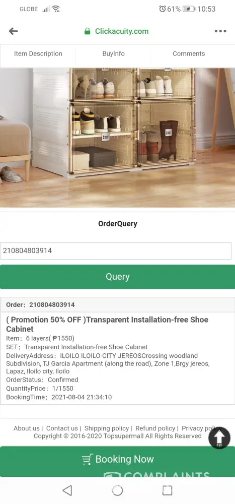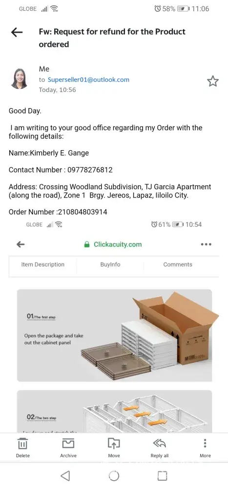 J&T Express Wrong item delivered. Ordered 6 layer shoes cabinet but received 4 pieces shoe boxes
