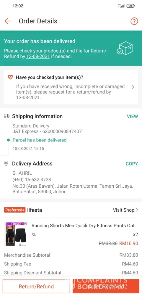 J&T Express Wrong sending address